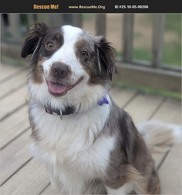 Meet Olive-the Red Merle Rocket with a Heart of Gold in Search of Her Forever! Looking for a sidekick who's equal parts athlete, genius, protector, and snuggle bug? Meet Olive-a 2-year-old, 30-pound Australian Shepherd with a full tail, a red-merle coat, and a master's degree in being awesome. Olive is the adventure buddy of your dreams: Car rides? She'll call shotgun. Walks and hikes? Lace up those shoes. Ball, tug, or swimming? She's got Olympic-level enthusiasm. Training? She's smarter than your average reality show contestant and learns new things faster than you can Google 'how to tire out a herding dog.' She knows her basic obedience! Olive is crate trained (it's her safe space) and house-trained. She's also been exposed to dock diving and LOVES it! But let's talk personality: Olive is playful and happy, but her love language is quality time. She doesn't need to be in your lap every second-just near you, close enough to know she's your number one. Now, a couple of ground rules from Olive herself: Men? Sorry, fellas, this girl prefers ladies. Quality girl time! Any men in Olive's life will need to be gentle, kind, and have the patience of Job. Kids? Herding small humans is apparently 'not acceptable,' so better to keep her world adult-only. Other pets? Also a no-go. Olive wants to be your one and only diva-and honestly, she deserves it! Apartment life? Nope. She's a 'room to roam' kind of gal. What Olive does want is an active home-someone who understands that Aussies are wired for fun, structure, and the occasional zoomie or splash. A fenced yard would be her dream playground, but what she really needs is someone willing to give her love, patience, and the occasional car ride with the windows down. From Olive (probably): 'Listen, I'm cute, smart, and athletic-basically the total package. I just need someone who gets me: no men, no other pets, and plenty of walks, hikes, or games of fetch. In return, I'll be your co-pilot, your trail buddy, your secret keeper, your best friend and maybe even your alarm clock (sorry in advance). Swipe right... I mean, apply today. Let's make this forever thing happen!' Olive is fostered in Kingsport, TN.