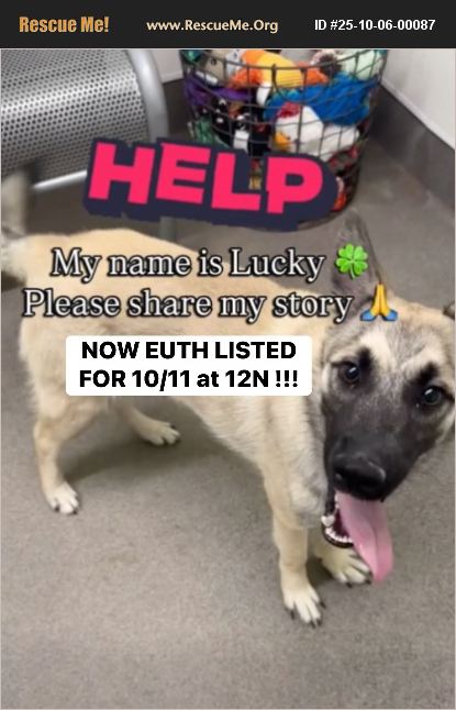 Courtesy Posting: EMERGENCY- SHEP PUPPY 'LUCKY' ID #A119816 AT HESPERIA SHELTER NOW EUTH LISTED (for space) ON 10/11 @12N HE IS STAFF FAVORITE!! NEEDS RESCUE/ FOSTER OR BREED SAVVY, ACTIVE LOVING HOME TO SAVE HIS LIFE!!!! WHO CAN SAVE HIM??? Lucky #A119816 https://24Petconnect.com/DetailsMain/HESP/A119816 Hesperia Shelter, Hesperia, So Cal Lucky #A119816 is a 13 month old Male shepherd, who is now recovered from kennel cough and is Euth listed for 10/11 at 12N pm at the Hesperia Shelter (for space). He has been at the shelter since 9/11/25 and of course the shelter is full!! This cutie is STAFF FAVORITE and full of energy + really charming WAS JUST TOLD BY THE SHELTER THAT THIS PUPPY IS NOW EUTH LISTED FOR 10/11 AT 12N. PLEASE CAN ANY OF YOU SAVE HIM???? He needs a loving, active home or rescue/ foster to save his life. I have links to videos of him shown below....plus there is a really cute video of him in this post!!! If you can rescue, foster or adopt him, please email Kathy Ramirez right away at Hesperia Shelter: [email protected] Thank you!! Debbie Alder LUCKY'S VIDEOS: 1) https://www.facebook.com/reel/1392490892592041 2) CUTE VIDEO ON THIS POST: https://www.facebook.com/monikak.mccomb/posts/pfbid02n3cvTj6fwyZuYg8XGm4mmqaqdiV4XSuXVagt2nGyA9rzawmQgjCWAxF66i62vP4Ql Jost Monica Another puppy CODE RED ~! Lucky - #a119816 https://www.facebook.com/reel/1392490892592041 Note: to view contents of links you will need to copy and paste each one separately into your browser.