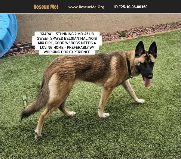 Courtesy posting: KIARA, San Diego, So Cal MEET KIARA - She is a 9 month old Belgian Malinois mix and she is only 45 pounds. She was rescued from euthanasia at the last minute from a high-kill shelter in Los Angeles area. She has been with me for almost 2 weeks and I think she is the sweetest dog with an amazing, loving temperament and balanced nature. Here is some info about her: - She is learning how to be a puppy and enjoy life again with confidence and excitement. -She loves dogs and would do best with another confident dog who enjoys playing and can be a teacher for her. - She is spayed and up to date on her vaccines - She is house broken - She is phenomenal in the car - Very curious, energetic, observant - Amazing off switch - Doesn't bark - Crate trained - Learning how to be great on leash - NOT reactive to anything on walks (including bikes, sirens, horns, cars, dogs, people, etc). - Sleeps outside of the crate at night with no issues but would love to sleep in bed with a person - Food/Toy motivated - Would do best with a working dog experienced owner - Learning basic obedience and is a fast learner and eager to please - She has a high prey drive and needs to be watched with cats and small dogs until she understands they are family. - I wouldnt recommend a home with chickens/rabbits/etc. She is available for adoption through Saving Gizmo's Friends or you may email the rescue directly at: [email protected] Note: We have additional pictures and video on her FB post at: https://m.facebook.com/story.php?story_fbid=pfbid0M8t5gKtVf8qBuKQf8fBRdrpdgFgNasQT7S9RycAK5D6DgqNrhwauzwchC5UtQ14El&id=783968124&mibextid=wwXIfr
