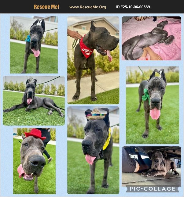 VIDEO INCLUDED: Meet Rocco- Our Gentle Giant Looking for a New Home! This handsome boy, Rocco, is being surrendered by his family through no fault of his own. They simply didn't realize how big he'd get. Birthday: 12/11/24. Breed: European Great Dane (Full bred). About Rocco: HE'S GORGEOUS!!! People-friendly. Unsure about other dogs (he's only been around his Pomeranian siblings). Housebroken. Loves toys & chasing ball. Great on leash. Total snugglebug. Has the most adorable zoomies! Enjoys playtime and family chase games. Nudges your hand for lovies. Sweet, gentle, and affectionate. Excellent napper. Rides great in the car. Treat connoisseur. Takes treats so gently. Best suited for a home with no young children (only because of his size). Rocco is a loving, goofy, gentle soul who just wants to be part of a family that understands how special (and big!) he is. If you're interested in fostering or adopting Rocco, please reach out to Jennifer with Pumpkin Pawz Rescue at (714) 366-8170. Please share this post far and wide- that's how we save lives!