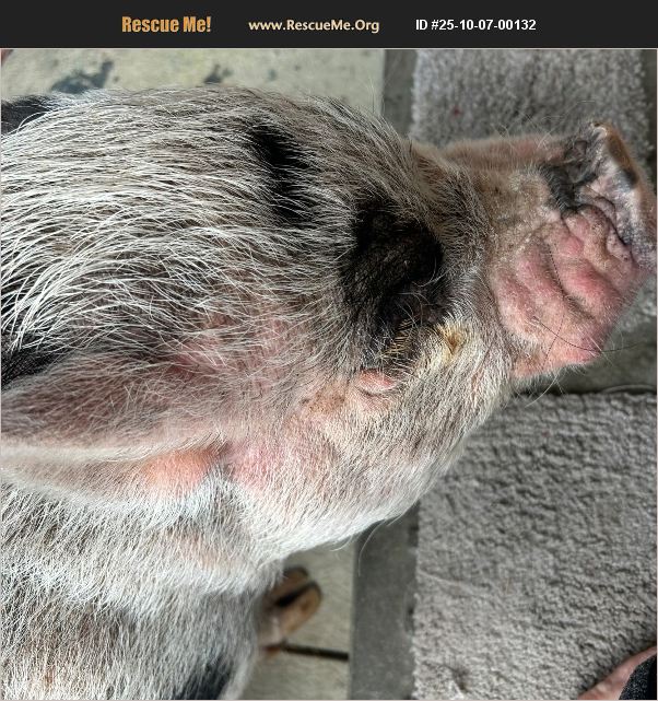I got her from man in Columbus of marketplace said he was getting evicted she is 8 yrs old and when I got her home seems to have been abused, afraid of dogs (he told me she was good with dogs) flinches to hand motions, cannot go behind her, she has welts and marks she needs someone with no pets to spend lots of time with her or a farm she seems to have a good personality I have been working with her but she is on my enclosed patio away from all other animals and I am maintaining her welfare in positive manner she was also constipated to point of straining but in last 4 days I have had her we have come along way she is now using the bathroom much better the owner was feeding her dog food I have been feeding her more pig oriented foods and fruits the owner was not upfront about anything with this poor baby the neglect and abuse is horrible I could keep her but it just seems she needs someone with more time or farm area her welfare and happiness is the priority here and having other animals I do not want any animal in stressful situation I do not feel it's fair to her for her to live with animals in fear.