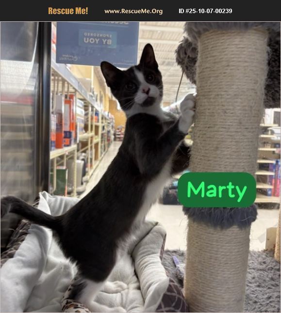 Marty (about 4 months old) is a handsome grey and white sweetheart with a gentle soul. He was a little shy his first week at Manalapan PetSmart, but you can already tell what a kind, loving boy he is. With a little patience and affection, Marty will blossom into the sweetest, most loyal companion. Come meet this tender-hearted little guy and let him melt your heart!