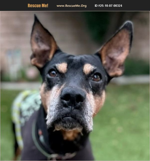 Meet Valor! This adult Doberman/Shepherd mix truly lives up to his name. Found abandoned and emaciated after surviving alone for months, Valor has shown incredible strength and heart. Now safe and cared for, he's beginning to thrive - gaining weight, learning to trust, and showing just how sweet and loyal he really is. Valor loves dogs, people and is eager to bond with his person. Despite all he's been through, his gentle nature shines through every day. Valor is a young adult who embodies bravery, gentleness, and loyalty. He's looking for a loving, stable home where he can finally rest easy knowing he'll never be hungry or alone again.