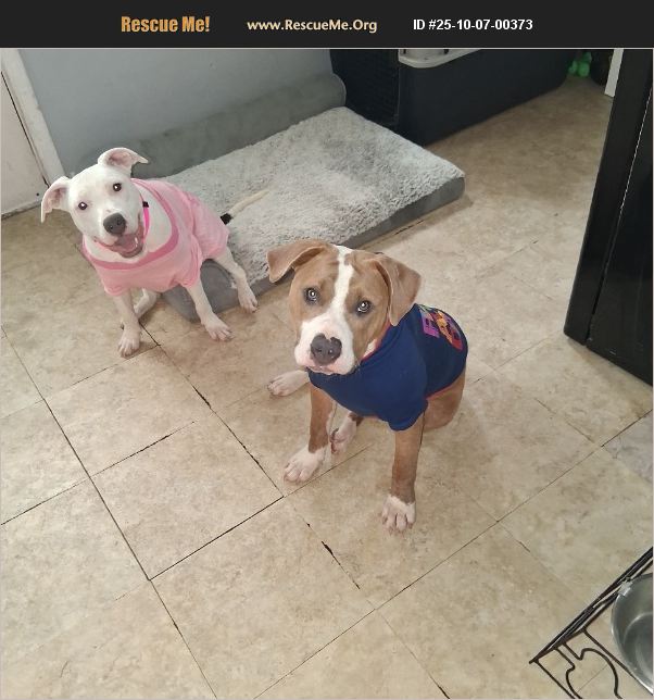 These two are siblings! Neither are fixed so they sleep in separate crates! They go poop and pee outside! No shots. They are very healthy pups! I want to keep them together! Tucker is the brown and Sofie is white. They will be a year old on Oct 26th! They are very Good! Playful puppies! Love to play fetch, we have a fenced in bwck yard they love to hangout side and run and wrestle with eachother and I have three babies They are good with and very protective! We just don't have the time for them and I feel horrible for it!
