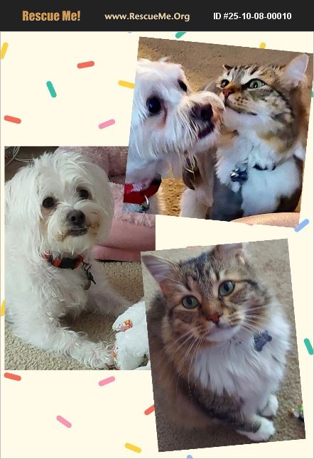 Placido: 7 yrs old neutered male Maltipoo. He gets along with both dogs & cats. He does prefer smaller dogs though. He has a great disposition & he's very playful. From owner: Placido is in good health just 2 fatty cysts that have just been checked by the vet & nothing to worry about. He is pads trained, crate trained has his own clothes. She will give all the wet and dry food. He knows tricks and was trained as a therapy dog for airports he is playful and a cuddler.he really is a great dog and has a great disposition and personality Update: we have found a temp foster so he's taken care of. Oberon: 5 yrs old neutered Maine Coon kitty. He has a fabulous temperament, very social & playful. Their mom has to be moved into a care facility now. We are looking for a 2 month temporary foster for her cat until she gets settled into the facility. Unfortunately, she won't be able to keep her little dog so we are looking for a loving furever home. Please contact Lisa at 818-268-4182, call or text.