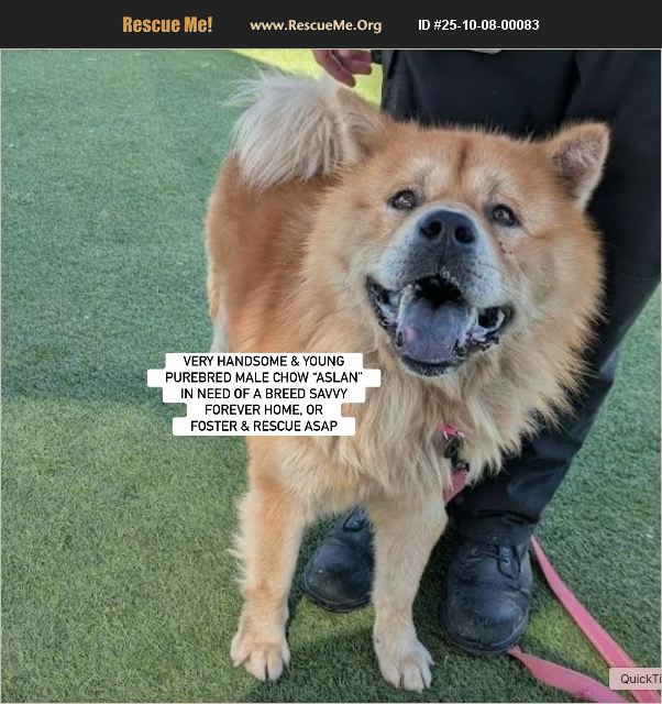 Courtesy Posting: CAMARILLO, CA (S CAL)- ID #A872180 - Ventura County Animal Services, Camarillo Location - VERY HANDSOME AND YOUNG PUREBRED MALE CHOW 'ASLAN' IN NEED OF A BREED SAVVY FOREVER HOME, OR FOSTER AND RESCUE ASAP Please help us find a loving, forever home for this super stunner who the shelter fondly named 'Aslan' due to looking like a regal lion. He was brought to the Ventura County shelter as an abandoned stray. Estimated to be only 3 years young, and weighing only 56 lbs, the shelter told us, ' he was found at a gas station, no chip. We haven't gotten to know him super well yet since he's so new...a little growly with leashing, very appeasing/affectionate with the person doing the vaccines.' They also provided us with a link to one of his videos showing him actively playing with a female chow mix, Glory, also available at this shelter, but not believed to be related. https://photos.app.goo.gl/AjBuuZN9tVwnHS9x5. Aslan would likely do best with a tolerant dog like Glory who is okay with rougher play style and isn't so dominant. Aslan was recently neutered, vaccinated and microchipped and ready to go home. If you are interested to adopt, please contact the shelter directly by calling (805) 388-4341 and ask about Aslan by ID. For further information about the adoption online process, you can go to: https://animalservices.venturacounty.gov/adoptionprocess/. His listing link is: https://24Petconnect.com/DetailsMain/VNTR/A872180 and https://animalservices.venturacounty.gov/viewan-2/?ida=A872180 If you may be interested in fostering or helping, please contact [email protected] or Southern California Chow Chow Rescue Network who can try to pair fosters with a rescue group. We will also post updates and additional pictures or video on facebook at: https://www.facebook.com/debbie.alder.14/posts/pfbid02ZE7uW94Woh77UADpXuR42z7rVx2DKm9WYbUqBv2Pd5Kxe37yCMcqMiV1iBuFGhskl Note: to view contents of links you will need to copy and paste each one separately into your browser.