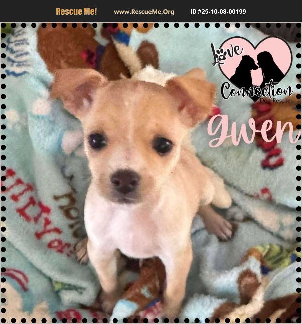 Meet Gwen! The Tiny Tornado of Joy This adorable little peanut is Gwen, a 3-lb Chi mix puppy born August 11, 2025. Don't let her tiny size fool you - Gwen is packed with personality! She's a zoomie queen, a fearless explorer, and a champion cuddler when playtime is done. She currently lives with her brother and two foster siblings (a 7-lb Chi mix and an 18-lb Shih Tzu mix) and loves everyone she meets - both two-legged and four-legged. Humans are her favorite�'�| though she sometimes forgets fingers aren't chew toys. Gwen's the perfect mix of spunky and sweet, ready to bring endless laughter and love to her forever family. Bestie applications here: https://forms.gle/7dTuG94nZKd839c2A