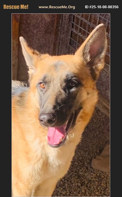 Two year old, spayed female German Shepherd. Came in with a male German Shepherd, and gets along with him. She has been friendly and affectionate to all persons interacting with her. She comes when called, and loves to be given praise and treats. She has a good appetite. She has been started on NuVet dog supplements. She is eating Victor Professional dog food. Her arrival weight was 56lbs, and she is gaining weight. She is up to date on vaccinations, monthly flea/tick/de-worm was done, and has a Negative Heartworm test. A test print out will be provided so you can purchase Heartguard Plus monthly prevention chews. She loves to participate in training and activities. She is very outgoing and friendly. She was brought in because her owner passed away. So she is definitely looking for a caring human to cherish her!