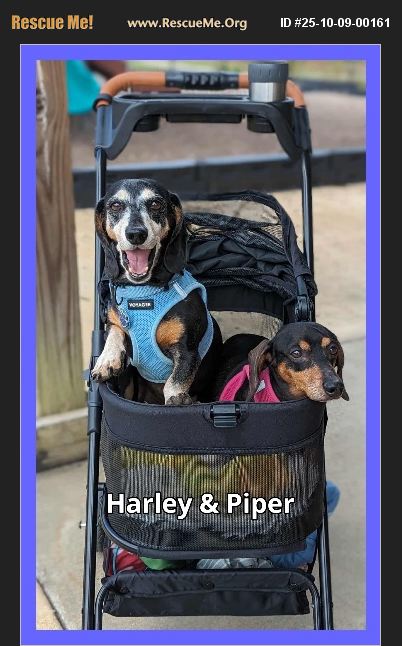 Meet Harley and Piper, an eight year old bonded pair. Harley is a happy 16 pounds and sweet Piper is 13 pounds. Harley and Piper are crate trained and housetrained. Like all dachshunds they should be reminded to go outside on a regular basis. Like all dogs, they will need to be confident in their environment to have good potty habits. All rescue dogs go through a period of adjustment, so understanding and patience is important. Harley and Piper are good with other dogs. They have not yet been tested with cats or children. Harley is a strong personality, and Piper is a calm, submissive girl. This lovely pair are very loving with their people. In their foster home in Alabama, they sleep in the big bed, and they are practicing their leash walking. Their favorite place is snuggling under blankies as much as they can. Piper has some allergies that affect her respiratory system, and needs to take antihistamines, and at times she may need low dose steroids. Harley (like many alpha dogs) has some separation anxiety and would like a home where his people can be home with him most of the time. Harley loves toys! So much so that he will tell any other dog that they are HIS! Piper feels the same way about food (but doesn't every dachshund that you know?), and she will try to eat food from other bowls in her foster home. Harley and Piper are waiting for their forever family. Is it you? Apply to adopt them today!