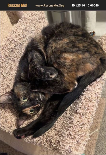 My aunt passed and this is her cat she left. I already own two cat and they can be together for some time unbothered. That being said she has a sister with a hot head. I have been trying to find her a home with someone I know so I know she is going to a trusted home. I need help re-homing this cat. She is very lovable and naps all the time. I have had no problems picking her up any way I please and she rarely get mad. She is very cuddly and will sleep on or near you. Nova can have some tortitude but does not snap at me. Nova is very anxious and hates closed doors. She has a person and wants to be within sight of them at all time. When we moved it took her 3 months to finally come around to the new house. She likes to meow at closed doors and in corners of the room.