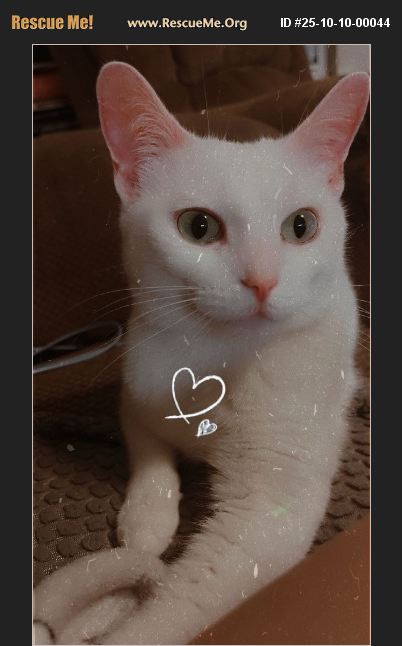 Snow is the sweetest cat you'll ever meet. Once she feels safe, she is incredibly affectionate. She loves cuddling up underneath the blanket with her person and loves naps. She can be very talkative and loves receiving kisses when she trusts you. One of her favorite activities is chirping along with birds she watches in the window. She loves getting brushed, but clipping her nails takes a lot of calm and patience. She prefers calming and quiet environments and people, but once she warms up to you she will never leave your side. She follows along like a quiet and gentle shadow. She's very elegant and likes to be in high up places, like on cabinets or at the top of a cat tower. In a few words, she is gentle, loving, and affectionate.
