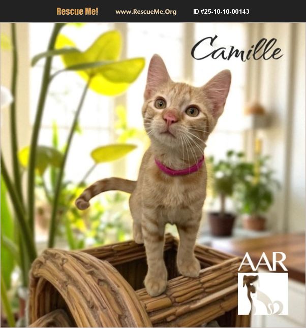 Camille is a sweet kitten and loves to be petted, but she can also be a bit independent. She prefers to be close to her people rather than being held by them. Camille likes to talk and tell you about her day, and she also uses her voice to tell you it's time to give her some attention. In foster care she was fine with the family's children and didn't seem to mind the family's own cats and dog as long as they kept a friendly distance.