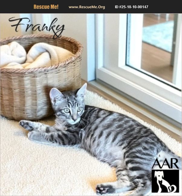 Franky is a sweet fun kitten. He likes all sorts of toys but his favorites are ones he can chase after. Franky is quite vocal and will let you know when he needs attention and playtime. In his foster home he got along with all the other cats, especially his sister Wallee. Come meet this handsome little guy!