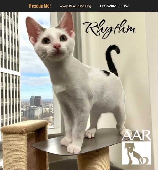 Rhythm is a sweet and playful kitten who is full of personality. He is very talkative, loves attention, and will happily follow you around hoping for snuggles. He enjoys playing with wand and spiral toys, and is sure to bring joy and laughter to his forever home.