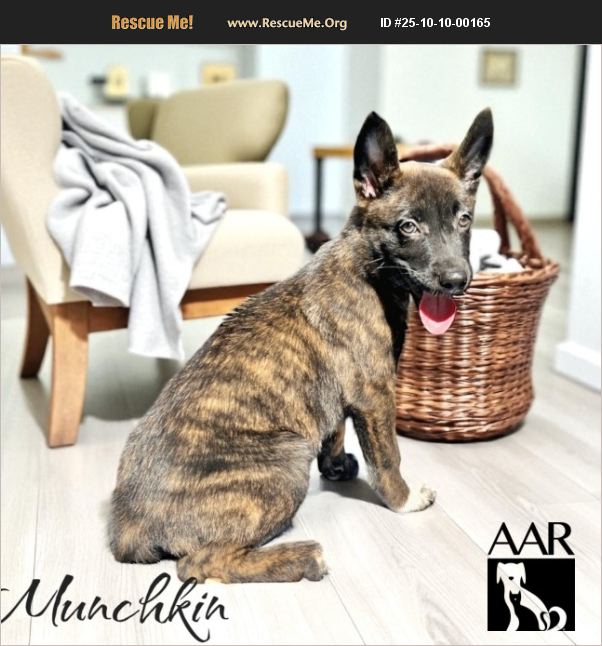 Munchkin is one of nine precious puppies born at our shelter to a sweet Malinois mix mama. When their mom sadly became too sick to nurse, AAR volunteers stepped in to bottle-feed and nurture the little ones until they were thriving and ready for solid food. Now back at the shelter, Munchkin is turning heads with her gorgeous dark brindle coat and winning hearts with her sparkling personality. She has a gentle, loving demeanor that makes her a volunteer favorite-and it's easy to see why! Playful, affectionate, and always ready to make new friends, Munchkin truly shines wherever she goes. As a Malinois mix, she'll grow into a smart, active dog who will need training, exercise, and plenty of mental challenges to keep her happy and engaged. In return, Munchkin will bring you loyalty, love, and endless joy. If you're looking for a pup who's as beautiful inside as she is outside, Munchkin is your girl! ��ե��%90%BE DOB: 7/25/25 13 lbs and growing everyday! AAR does not transport of adoption.