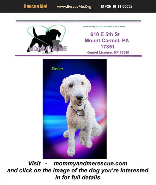 Please fill out an application here ) https://mommyandmerescue.com/adoption-application/ and give your vet clinic permission to speak with us. Spayed/Neutered, UTD on vaccines, Chipped Adoption fee 400 You must submit the application and be approved prior to meeting one of our dogs. Please add our EMAIL to your contacts! [email protected] Kennel License: NP 16320 Seven 7 months old Standard Poodle Seven came to us when her owner could no longer care for her. Seven is very people oriented and loves to be with her person/s. Seven is gentle, loving, attentive, and intelligent. She loves other dogs and would probably be fine with cats. She would do ok with kids that she can't accidentally knock over. Seven is crate-trained and house-trained. She would do best with a companion dog or someone who works from home . Seven was trained at FIDOS SCI Coal Township and knows the following commands: Stay Sit Down Come Off Go Potty Paw