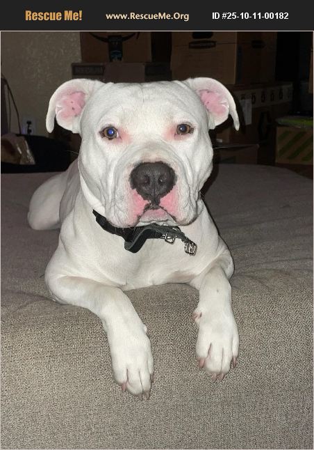 Tyson is good with kids and females. He's very protective and is not comfortable with men he doesn't know due to his past. He does ok with other dogs once he has had time but it takes time and patience. He is not ok with cats at all. He is a big boy who thinks he's a lap dog and is very affectionate to people once he is comfortable with them. Please help him find a new loving home