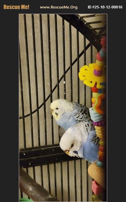 Looking for loving home for 2 adult female parakeets. Approximately 3 and 4 years old. Well-mannered, sweet, and love to chirp during the day. Come with full cage for both parakeets, one travel carrier, one smaller cage, food, snacks, toys, cuttle bones, food bowls, light, and other bird accessories all included. ONLY AVAILABLE AS A PAIR.