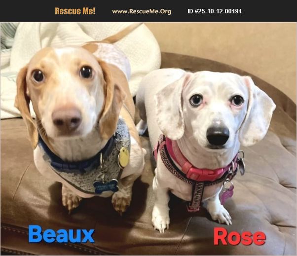 This darling duo will bring lots of love and fun to their new family! Both just turned 5; Rose 13 pounds, Beaux 16.�%A0 They lost their home when their owner became unable to care for them. They are sweet, gentle babies,�%A0 who love people, enjoy Dogs, lived well with a cat.�%A0 They are playful with one another, other dogs. Both are cuddlers, love being close to each other and their humans.�%A0 Beaux and Rose are a gem of a pair, full of doxie spirit!�%A0 Fostered near Philadelphia, PA. Adoption fee $825. www.longdogsrescue.org/application