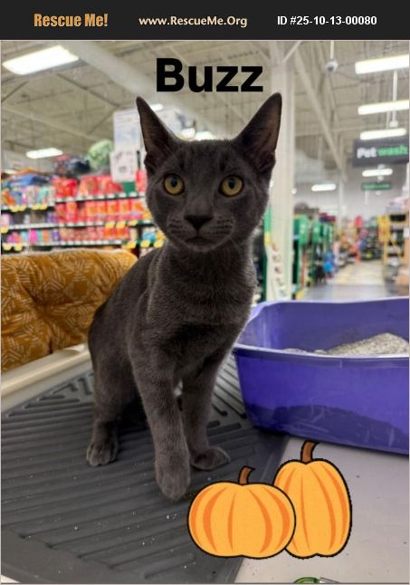 Why did Buzz the cat always get invited to space parties ? Because he was the purr-fect astronaut- always ready to take a meow-n mission. Buss is a four month old male kitten who will have your heart within minutes of meeting him. Buzz loves to be pet and be the center of attention