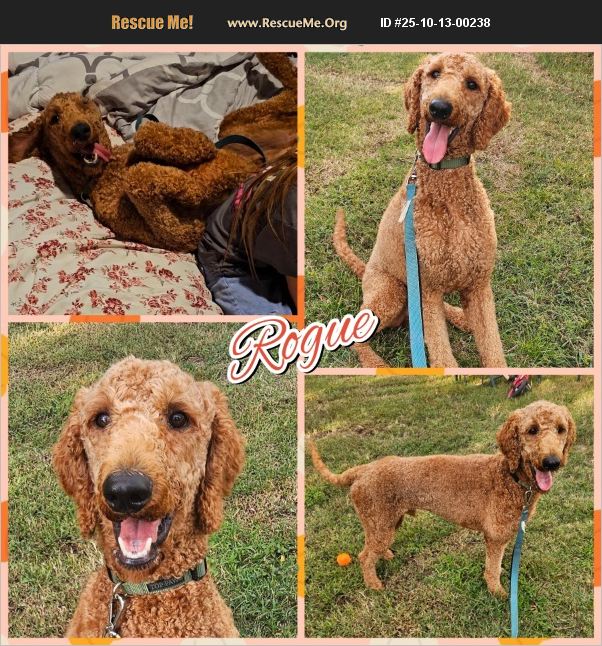 Meet Rogue! Breed: standard poodle. Age: est 1.5-2 years. Weight: approx 55-60lbs. Training: crate & leash trained, doing well with housetraining in his foster home. He does pull on the leash when excited so does need more training. He knows sit, he is very food motivated, and eager to learn. Good with other dogs/cats? Yes. Good with adults/kids? Yes, although he doesn't know his size. He would do best in a home with kids older than 10 years. Personality: friendly, playful, and affectionate. Reason for rescue: Rogue was originally rescued after coming in to the shelter very matted as a stray. The family that rescued him took him in to save him, but they realized it wasn't the best match for long term. He is neutered, microchipped, heartworm negative, and current on vaccinations and preventatives. Rogue is a 1-2-year-old Standard Poodle (possibly a doodle mix), but he appears to have mostly a beautiful poodle coat and a long, graceful tail! Rogue's story started off rough - he was found as a stray, severely matted and emaciated. Thankfully, a kind family stepped in to get him to safety. They had him groomed, helped him gain weight, and reached out to us so we could help him find the forever home he deserves. �%9D%A4��%8F Rogue is affectionate, playful, and full of love. He adores people and gets along well with other dogs and cats. He's good with older kids (he doesn't quite realize his size yet!). Rogue is excellent in his crate, does well with supervised house training (as we do with all fosters), and is leash trained, though he can get a little excited and pull at times, so continued leash work will help. He knows some basic commands and is learning not to jump up, though when he does, it's more like he is giving a hug. He is very food motivated and eager to please. Rogue will make someone an incredible, loyal, and loving companion. He's ready for a family to call his own and a lifetime of adventures ahead! If interested in adding this sweet boy to your family, please message for an adoption application! Adoption fee: $350.