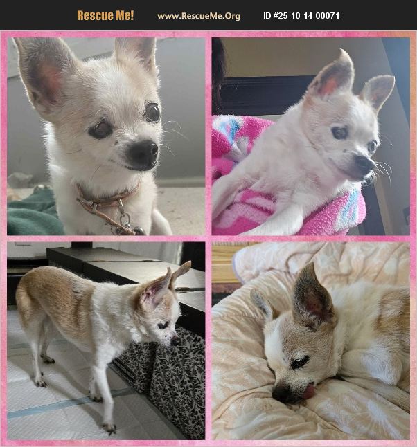 Peaches is an 18-year-old Chihuahua who proves that love and spirit don't fade with age. She weighs just 6 pounds and is both blind and deaf, but she gets around well and always finds her favorite spots. Peaches came to the rescue after her owner passed away. It's clear she was cherished and well cared for. She recently had a full checkup and bloodwork, and the vet gave her a clean bill of health with only minor age-related quirks. She isn't on any medication. This tiny girl loves her meals blended since she doesn't have any teeth, and she eats with enthusiasm every time. She isn't picky at all. Peaches enjoys the company of other small dogs and cats and has a big personality for such a little body. She'll bark to let you know when she wants attention, but that's just her way of making sure you remember she's there- as if you could forget! Peaches may show a bit of anxiety at times, or she could simply be adjusting to all the recent changes in her life. Either way, she settles in once she feels safe with her human. She's looking for a loving home where she can spend her golden years surrounded by care and comfort. Because of her tiny size, she would do best in a home with no small children. Peaches may be a senior, but she still has plenty of love to give. Fill out an adoption application here: https://www.clawsadopt.org/dogadoption