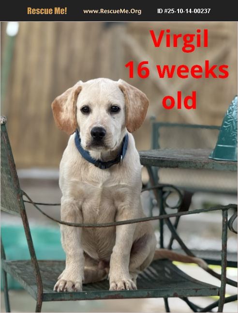 Virgil is a handsome 16 week old boy! He appears to be a Lab/ Vizsla (mom appears mostly Vizsla). He is a happy, go lucky, energetic, goofball! We are teaching him manners and he has come so far since arriving! Virgil is good with kids, dogs and cats. He is neutered, vaccinated, dewormed, microchipped, and heartworm negative! His adoption fee is $350.