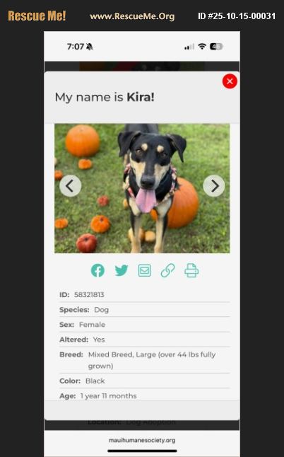 Transport from Hawaii can be arranged/sponsored. -Recommended for a mature household -Best suited for an experienced owner -Under socialized, flight risk and responds best to slow, thoughtful introductions -Shows signs of fear, anxiety, or stress (FAS) in the kennel environment -Currently on long term anxiety meds -Has been successful with other dogs and would benefit from going to a home with one to help boost her confidence. Can be dog selective. -Likes to use pop-up crates -Loves toys, treats and gentle affection from known handlers -Loves zoomies!