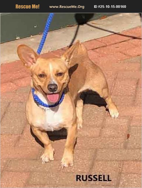 Russell was surrendered by his owner because she had to move in with her daughter and the daughter would not allow the dog. Russell is a very friendly, sweet, affectionate boy who is roughly 2 years old, weighs 20 lbs., is up to date with his shots, heartworm negative and will be neutered and chipped. He is great on a leash, he can jump right in the car and rides well, he is good with most dogs ( but, you could bring your dog for a meeting), okay with some cats, not housetrained. A really nice little dog who would be a great companion for someone.
