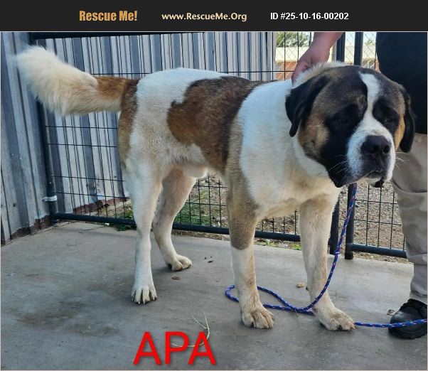 APA- Full blood St Bernard 2 1/2 years old, Dapp, simparica 10/15. He's too big for our scale���%A4 but he's 100-120 for sure. He's lived in a cage of some sort his whole life. The people moved, and he broke out of the cage, jumped the 4' chain link fence, and killed the neighbor's small dog����
