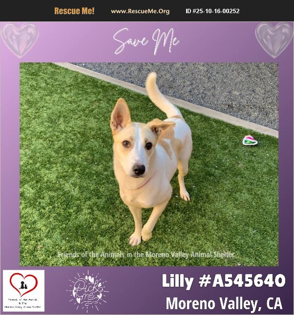 Shelter staff named me LILLY and I am a female, white and tan Australian Cattle Dog mix. The shelter thinks I am about 9 months old I weigh approximately 46.60 lbs. I have been at the shelter since Oct 16, 2025 and I may be available for adoption on Oct 23, 2025 at 4:07AM
