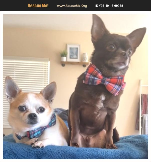 Cooper and Charil Mae are bonded 'brother and sister' Cooper is a brown 9.5 year old Chihuahua weighing approximately 6.2 pounds and his 'sister' Charli Mae is an 10 year old tan and white female Chihuahua weighing approximately 6.5 pounds. They came to us when their owner passed away. They are house trained and also use a potty pad. They have been together for 10 years. They must stay together. They have to be in a home without small children. Cooper may need dental work in the future. They are friendly and affectionate. The adoption donation for the pair is $300 which includes their neuter/spay, vaccinations and microchip. They are heartworm negative and on monthly prevention. They are currently in a foster home and we are requesting an approved application prior to meet and greet. They recently lost their owner and are anxiously awaiting their forever home. https://www.aforeverhomeanimalrescue.org/store/p158/Cooper_&_Charli.html We are only able to adopt within the state of Florida. We have a page on our website that explains our adoption process, and contains a link to our adoption application. Here is the link: https://www.aforeverhomeanimalrescue.org/adoption-information.html