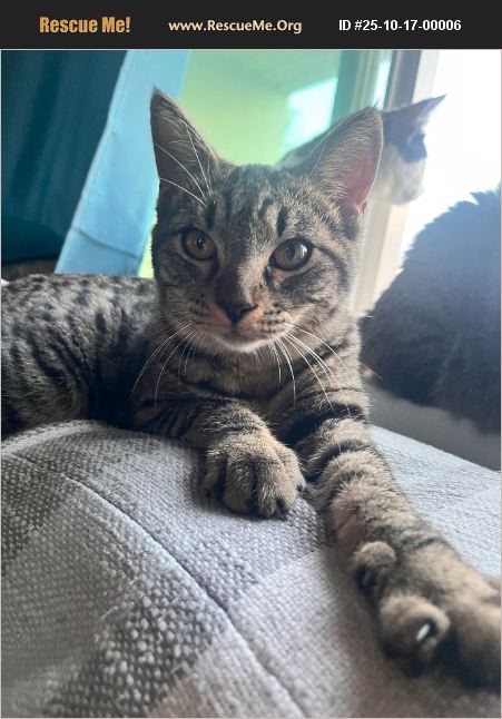 Leah is a stray kitten we are fostering. She was immediately friendly with us and likes to play with our cats. We can't keep her in our home, as we already have two older cats and a baby on the way, but she is ready to live somewhere she can be inside and get the attention she deserves. She likes soft beds, blankets, and pillows. She loves to play with all types of toys, but she especially loves wands. Since she is newly an inside cat and would be leaving her first home for a new one, she will need some time to get comfortable. After that, she is very cuddly and loves to be petted! She is okay being held, litter-box trained, and responds to calls/snaps. She is not spayed or vaccinated.