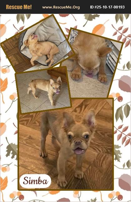 This adorable boy is Simba. He is a one year old fluffy frenchie. Simba came to us from a breeder we he was a few months old. He was extremely small and wasn't gaining weight. We had several vet appointments and had him neutered when he was at a safe weight. The vet could not find any medical issues with him, and he eventually started growing and gaining weight, he is currently 10lbs. Simba will need continued work on potty training. He's such a loving, snuggly boy. He loves playing with the other young dogs in the rescue. He is neutered, fully vaccinated and microchipped. His fee is $800. Our application is online at https://form.jotform.com/souldogrr/application or email the rescue at [email protected].