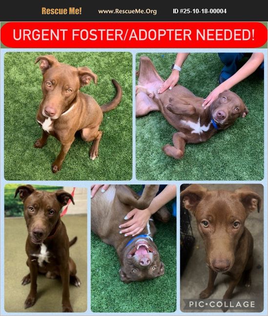 URGENT: PLEASE HELP SAVE BUCK! This sweet boy, Buck (now named Bronze, ID #A545536), has known nothing but love from his owner. But life has been unbelievably cruel. His mom has been fighting so hard to keep him safe after losing her home, she lived in her car with her dogs just so they could stay together. When her car broke down beyond repair, she scraped everything she could to try and get another, but with no safe place left for Buck while she worked and the heat rising dangerously, her worst nightmare came true. She had no choice but to let him go to the shelter. Now Buck sits behind shelter walls, confused and heartbroken. His mom is terrified he won't make it out alive. She has tried for over a year to hold on, but luck has run out, and now Buck's only chance is YOU. Please, share his story far and wide so he doesn't become another statistic. About Buck: ID: A545536. 1.5 years old. 57 lbs (Shelter has the age wrong). Male Labrador Retriever mix, brown & white. Crate trained and potty trained. Total love bug- happy, silly, affectionate, loves belly rubs and enjoys exploring the yard. Been at the shelter since Aug 19, 2025. Adoption available Aug 26, 2025. Buck deserves a safe forever home or even a foster, so his mom can keep fighting to rebuild her life knowing he's loved and safe. Please don't let him die in the shelter. Located at: Moreno Valley Animal Shelter 14041 Elsworth Street, Moreno Valley, CA 92553 (951) 413-3790. Website: www.moreno-valley.ca.us/resident_services/animal/index-animal.html. If interested in fostering, please contact Jennifer with Pumpkin Pawz Rescue at +1 (714) 366-8170.. Please SHARE everywhere. Buck's life depends on it. sHLTER PHOToS/VIDEOS: https://myalbum.com/album/Ywp8uG3Hj72Pm9/