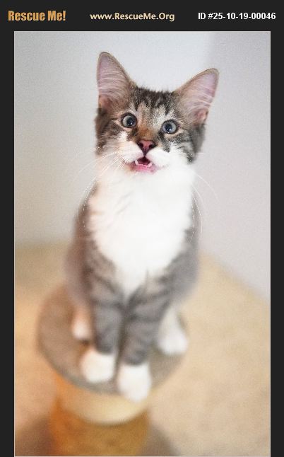 Very sweet and affectionate boy - Earl likes to cuddle and sleep with you - purrs away. He also does a little squeak to communicate with you. Its super adorable. Earl Grey is a wonderful, loving and affectionate kitten who is also playful and curious. He's a great kitten! A lovely medium haired grey tabby with white, he's got a long plumey tail. He's got light blue green eyes - that are a little cross eyed - he's got a bit of a siamese look. And ears on the top of his head give him a Maine Coon look. So unique! - Really a stunning cat. Most of all he's loving, affectionate and a very good natured kitten. Earl Grey has a brother, Sir Whiskers and we would be absolutely delighted if they were adopted together. They love each other - and they play with each other. They're not super bonded as in they don't always sleep together but they often do and are bonded. If you have no other pets at home, a pair of kittens is a good choice because they keep each other company while you're at work or away from home. Even if you're home all the time, a pair of kittens is a cute way to give them a rich life. They've been lovingly fostered and are ready for their lifetime home. Neutered, microchipped rabies vaccination, a series of 3 FVRCP vaccinations, deworming protocol, monthly flea preventative revolution plus. He tested negative for the feline leukemia virus and feline immunodeficiency virus are included with the adoption. Approximate DOB is 5.8.25. His adoption fee helps to 'pay it forward' so the next kitten or cat can be saved. To submit an adoption interest form, you may do so at the link below or ask us to email you a document. https:/form.jotform.com/233454813758161