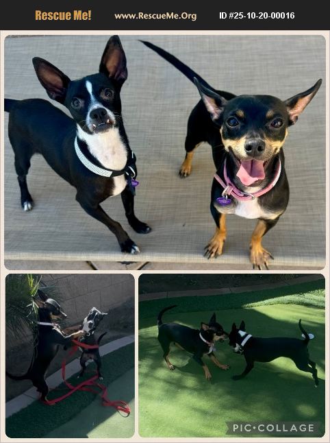 VIDEO INCLUDED: These two tiny deer-head Chihuahua/Miniature Pinscher mix, Amara and Chase knew nothing but neglect and isolation in their short 7 months of life. No soft beds. No toys. No love. Just cold/hot, lonely nights in a garage or worse, with the coyotes lurking. Thankfully, someone stepped up for them. And because they have been with a loving foster, they have come out of their shells! They are very friendly. Good with everyone! Amara and Chase have become very bonded, so they need to be adopted together. Amara is the sweet brown and black female. Chase is the black and white male with soulful eyes. Each one only weighs about 5lbs each. Contact Jacqueline with Bless the Beast Rescue if you want to adopt: 951-532-5151 blessthebeastanimalrescue.org. Let's give these sweet babies the future they deserve.