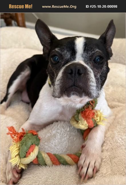 ���� Meet Buggy - The Cuddle Queen of Boston Terriers! ���� At 10 years young, Buggy is the perfect mix of spunky and snuggly! She may be a seasoned sweetheart, but don't let her age fool you - she's still got plenty of pep in her step and love to give. Buggy's favorite hobbies? Snuggling up for marathon cuddle sessions, doling out endless kisses, and curling up for cozy naps in her crate. She's the ultimate lap dog and professional lovebug, always happiest when she's close to her people. This gentle gal gets along wonderfully with kids and other dogs - she's basically everyone's best friend. ��ե If you're looking for a loyal little shadow who's equal parts sass and sweetness, Buggy's your girl. Come meet her and let the snuggles begin! ��%90%BE����