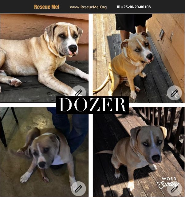 4 years ��%BD'� 77 pounds ��%BD'� Not crate trained ��%BD'� Potty trained, yes ��%BD'� Temperament is low ��%BD'� Tolerant of all other dogs ��%BD'� Not known if he gets along with cats ��%BD'� Good with kids? Yes ��%BD'� Commands doggo knows: Sit, Stay and fine-tuning Come ��%BD'� Any allergies or other medical issues? None Dozer is a total love bug and enjoys real heartfelt human hugs. He enjoys taking walks and does very well on a leash��%BD'��%BD|other than when he sees a deer because he enjoys chasing them. For 'The Doze' it is a game of chase and a competitive race as he would never hurt one. In fact, he touches nose to beak with his two bird friends, they are Blue & Gold Macaw parrots. You see, Doze loves all living creatures no matter the type. Dozer is always excited to meet new people and is very gentle around small children and the elderly. He can be a clown and will have you laughing out loud with his antics. You can continue to enjoy peace and quiet because this handsome gentle creature is not a barker. Honestly, he is basically perfect and will do best with someone willing to take him on daily walks and new adventures! This heavy-weight guy has a heart of gold, loves to snuggle in your bed and shares lots of kisses. When he plays with small dogs it is entertaining to watch because this big galoot is tender and manages to magically dance (as if on tippy toes) around his playmate like a ballerina! He actually gently tosses a toy to his playmate(s) allowing the other to have it. This dog knows all about sharing toys! Dozer enjoys all toys and especially squeaky balls! He knows how to play fetch and will return the item to the thrower 9 times out of ten. His favorite treats are bully sticks, large natural bones from the local feed store and 'Three Dog Bakery' goodies, available on Amazon. However, more than anything else he prefers a good belly rub and doesn't care if you use your hand or foot in doing so. The only thing he isn't comfortable with is a bath or shower but he certainly enjoys both rivers and lakes as well as exploring the world around him! More than anything in this world he simply wants love and a forever home and he certainly deserves it.