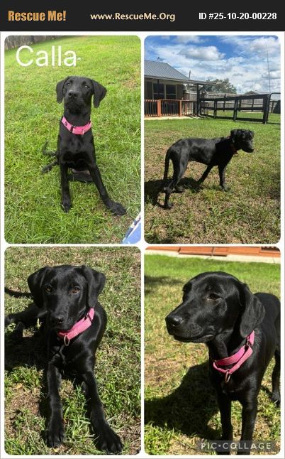 Meet Calla ���� 6 months �'ۢ 34 lbs �'ۢ Lab mix Named after the elegant Calla Lily, this sweet girl is just as lovely as her namesake. With her smooth, shiny black coat and gentle nature, Calla wins hearts wherever she goes. She's a playful pup who's learning the art of fetch - right now, she's all about the chase, and bringing it back is still a solid 50/50 (but hey, practice makes perfect!). Calla adores other dogs, people, and toys. She's not a jumper, is incredibly gentle, and melts for a good belly rub. If you give a whistle, she'll come running - tail wagging and ready for love. She'd thrive in a home with another friendly dog, but honestly, she'd fit right in just about anywhere. Calla is learning all the good things - manners, leash walking, and the joy of being part of a family - and she's more than ready to find her forever home. ���� Sweet, social, and shining bright - that's Calla. All of our animals are fully vetted which includes spay/neuter, up to date on vaccines, wormed, heartworm tested and treated if necessary, up to date on flea/tick/heartworm prevention and microchipped) prior to adoption. To start the adoption process please fill out (https://www.shelterluv.com/matchme/adopt/WAG/Dog) and please read our requirements located in the application.