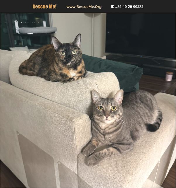 Hello, I'm looking for someone to adopt my two cats, Diana and Grace. They were both born in April 2024 and adopted together that August from the Arizona Humane Society (Papago Park Campus). They've lived with me ever since and have grown into wonderful, loving companions. Grace is an affectionate gray tabby who loves lap time and cuddles. She purrs loudly while being pet and sometimes gets the zoomies-running and leaping around the house with playful energy. Diana is a clever tortie who loves playtime and mental stimulation. She's learned a few tricks through clicker training and enjoys being near her person, even if she's not quite as cuddly as Grace. Both girls are spayed, fully litter-trained, and were last seen by a vet in September 2025, receiving a clean bill of health. They're up to date on all vaccinations and have been fed a balanced diet of quality wet and dry food. They're a bonded pair who get along beautifully with each other and are shy but gentle with new people. I'm rehoming them because my life circumstances have changed, and I'm no longer able to give them the attention they deserve. My top priority is finding them a loving, stable home where they can stay together. They'd do best in a calm environment with someone who enjoys play, patience, and companionship. I live in North Phoenix near Desert Ridge, and I'm happy to include everything they know and love - food, treats, toys, litter boxes, scratchers, a cat tree, tunnel, and three window perches. If you or someone you know might be interested, please reach out. An adoption fee of $100 helps ensure they go to a responsible, committed home and will go toward their continued care. Thank you for helping me find a great home for these sweet girls. - Jake