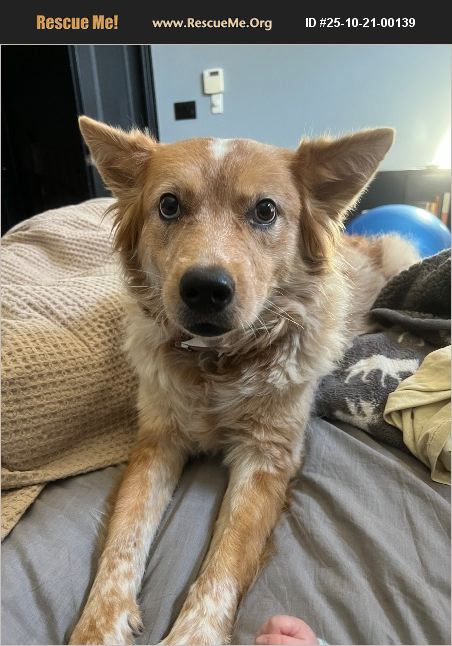 Ella is a sweet, 5-year-old Australian Cattle Dog with a beautiful tan and white coat and a big heart. She's incredibly loyal, fully potty trained, and loves to run and explore in open spaces. She's great with children and thrives in a family environment. Ella can be a little unsure at first - especially around other dogs - but once she feels safe, her loving personality shines. She's happiest chasing squirrels, cuddling up at home, and just being a good dog. Ella would do best in a home where she has room to play and someone who understands her energetic and protective nature.