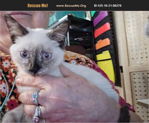 This sweet gal is ready for adoption! TO ADOPT: Fill out the application online at https://www.siameseorientalsnowshoerescue.org/adopt or soscatrescue.org More info at siameseorientalsnowshoerescue.org/FAQ Each cat will come to their new home with: neutered or spayed, age-appropriate vaccines, individually tested negative for FeLV/FIV, heartworm negative, and microchipped.