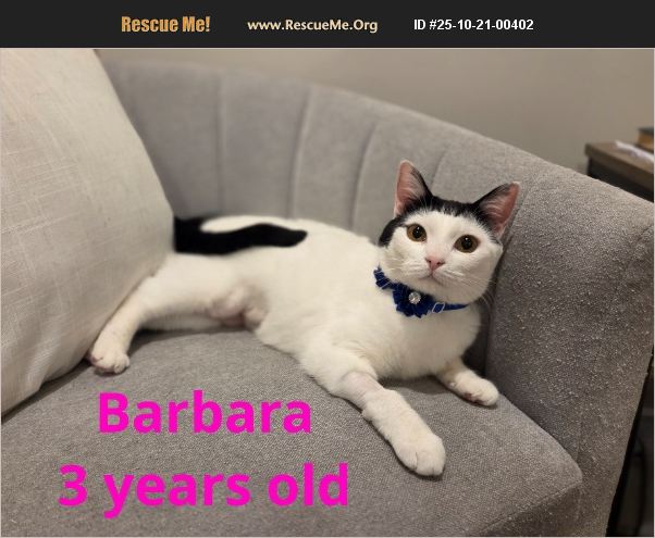 Meet Barbara! Barbara is a stunning 3-year-old beauty who truly never has a bad hair day! This gorgeous girl is as sweet as she is pretty - she purrs almost nonstop and loves soaking up attention from her people. Barbara is great with dogs but prefers to be the only cat so she can have all the love (and all the naps!) to herself. She's litter box trained, well-behaved, and ready to bring joy and affection to her forever home. Barbara has been spayed, fully vaccinated, dewormed, microchipped, and tested FIV/FeLV negative. Adoption Fee: $125 If you're looking for a loving, loyal companion who's equal parts elegance and charm, Barbara is your girl!