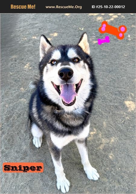 Meet incredible Sniper, this irresistible handsome malamute/husky boy, who is approximately 15 months old, 65 pounds of pure joy! He is up-to-date on shots, microchipped, and neutered. Sniper is astonishingly sweet and playful with all people and dogs, and would thrive in an active family, preferably with another canine companion to share in the fun! He's always ready for walks, trips, and cuddles, and is just as happy to lounge on the He is social and absolutely wonderful with all dogs, people and kids. He LOVES playing with his toys and chews. He is a quick learner and is treat and praise motivated. He enjoys his daily runs with his rescue friends and he can just as easily cuddle up on the couch next to you for a nap. Sniper is just the best boy and deserves an active home with another friendly dog.' Sniper was dumped on the street by a POS landlord who kicked out a family after and ICE RAID . We saw him running down the street and caught him. Sniper is NOT an escape artist and hasn't even attempted to jump the 5 foot rescue fence. DIAMOND IN THE RUFF! Apply now to adopt Sniper and give him the life he deserves , a life filled with love and joy!