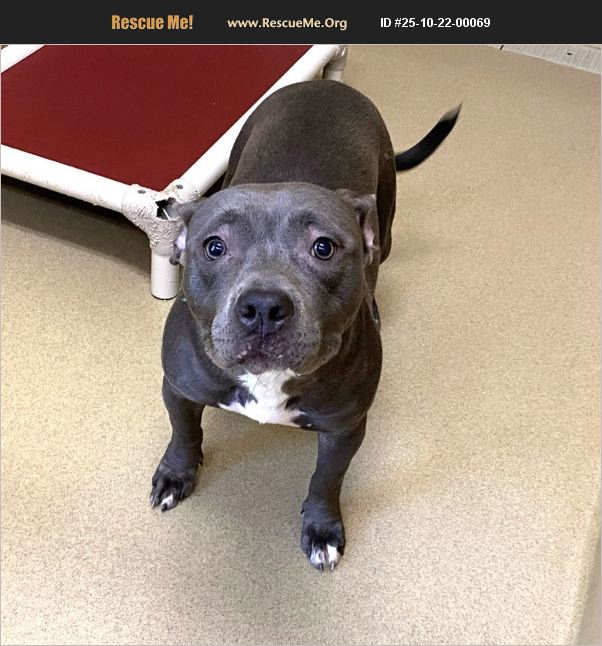 #21017 is a grey and white female Pit Bull Terrier mix. She is approximately 2 years old. Unknown She was picked up stray by an animal control officer. She is gentle and affectionate. She needs some leash training.
