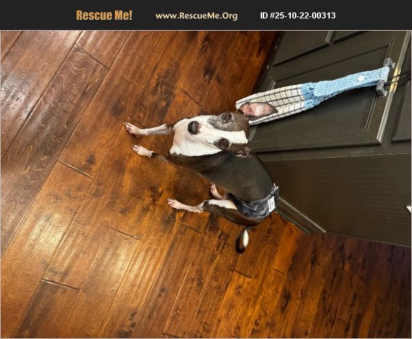 Dark brown and white coat. He is not house trained and needs a diaper.
