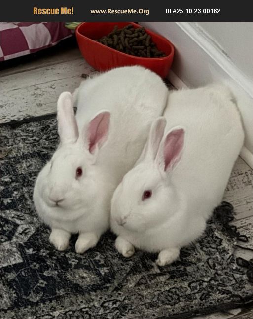 Winter and Twinkle are brave, curious, and gentle 1-year-old New Zealand sisters who were born in our care after their mom was rescued as a stray. Winter is the spunky explorer of the duo-always the first to investigate new spaces, especially when toys or enrichment activities are involved. Twinkle, her calm and tender counterpart, takes comfort in quiet moments and blossoms with her sister by her side. Both girls are tidy, adaptable, and love a predictable routine filled with daytime 'bunstruction' and nighttime zoomies. While Winter's confidence helps Twinkle feel secure, Twinkle's gentle presence balances Winter's boldness. Together, they make a loving, well-matched pair who would thrive in a peaceful home with patient humans and plenty of space to play. Red-Eyed White (REW) rabbits are among the smartest breeds, known for their quick learning, ability to recognize their name, and even follow commands or learn tricks. In addition to their intelligence, REWs tend to have fewer health issues than many fancy breeds, avoiding common ear and dental problems. As a bonus, they're also known for their cleanliness and strong litter box habits-making them fantastic companions! ----- ����Think this rabbit may be a good fit for your single bun? Our rescue also offers bonding services for eligible single bunnies. ��%8F%A0Not sure if a rabbit is right for your home? Fostering is a great way to learn about rabbit care or see if a particular rabbit is a good fit for you. We provide the start-up materials and education; apply on our website! ���%8D��%8FPrepare your home with the proper supplies for a house rabbit; see our recomendaitons here:�%A0www.respectforrabbits.org/shop.