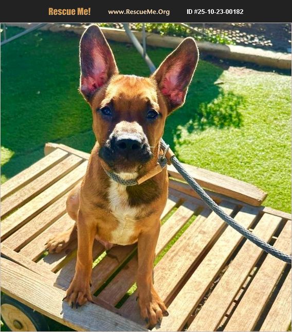 Augie is a 10-month-old, 27-pound puppy located in Rancho Cucamonga, CA. He has been neutered, microchipped, and is fully vaccinated. Augie is a playful, happy pup who loves to do zoomies, play with toys, and go on adventures. He's affectionate, athletic, curious, and clever-an adorable mix of goofy and snuggly. He gets along great with dogs of all sizes, cats, and kids. Augie is food motivated and eager to learn, so with a little puppy training he'll make an amazing companion. We're not sure of his exact breed, but with his compact build and tall stand-up ears, he looks like a Frenchie mix. Adoption fee is $400. To apply, email [email protected] for an application. Augie is ready for immediate placement and can't wait to meet his forever family.