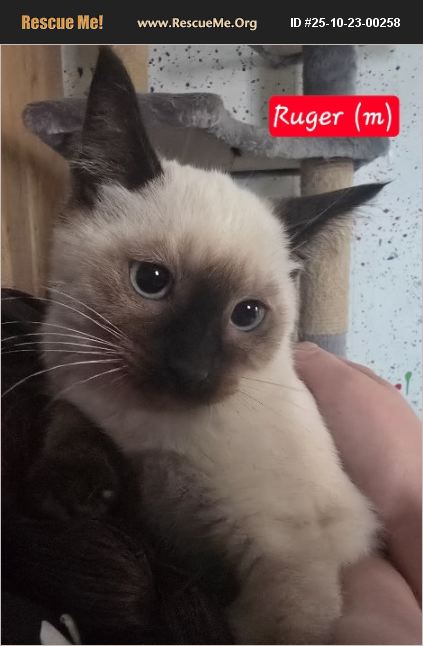 Ruger was born outside and was rescued with his siblings at about 5 weeks old. He took awhile to decide people are ok. He's still timid at first, but then he will curl up in your arms and go to sleep. He has beautiful blue eyes. He just needs a home to thrive in to really get him out of his shell.